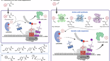 Gibson assembly was used to construct all plasmids used in this study with pET28a, pHT01, and p43NMK as backbones54,55,56,57. For genome editing of E. coli ∆321AM, λ-Red recombination was used, and pCP20 served to eliminate resistance selection markers on the E. coli genome. A homologous recombination box with 1000 bp homology arms was used to perform genome editing in B. subtilis, and the Cre-lox system was used to eliminate resistance selection markers on the genome.
