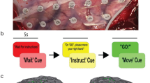 Go/NoGo SEEG data were preprocessed identically to the main cohort resting-state data, using cWM-referencing and the same 18 HFO-range Morlet filters to quantify time-resolved phase synchronization. We assessed event-related neuronal responses for Go trials with responses (724.9 ± 20.6, range = 682–750) and NoGo trials with withheld responses (241.2 ± 6.2, range = 230–250). The recording was partitioned into 1500 ms epochs, i.e., 500 ms prior to, and 1000 ms after cue onset. To avoid filtering artefacts, we rejected the first and the last 100 ms of samples for each trial (longest Morlet wavelet was 91 samples in length). Narrow-band HFO amplitude envelopes were average across trials and then subtracted the mean baseline amplitude (400–10 ms prior to cue). We then normalized (z-score) these baseline-corrected responses, averaged across 18 frequencies and defined task-relevance for each contact based on the global high-gamma amplitude response averaged during 100–400 ms after cue onsets (one exemplary subject see Fig. 8a).