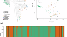 We first built a genomic dataset comprising 173 landraces originating from 10 Sahelian countries (Fig. 1). Using 100 plants per landrace in a pool-sequencing design, we estimated allele frequencies for each landrace at 138,948 polymorphic single-nucleotide polymorphisms (SNPs, Supplementary Data 1 and 2). Principal component analyses (PCAs) of SNP allele frequencies with complete data on landraces clearly separated according to their geographical origin (Fig. 1c, d) and landraces were found to cluster according to the country.