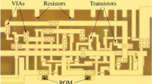 The hybrid (i.e., Si-based control logic and printed PUF core) PUF system and its components are shown in Fig. 1a–d. The printed PUF core, as an intrinsic variation source, is embedded into an addressing and readout environment, as shown in Supplementary Fig. 1. The hybrid PUF evaluation and unique response generation principle is shown in Fig. 1e–h and Supplementary Fig. 2. The PUF core circuit consists of an inkjet-printed inverter array realized with EGTs and resistive indium-tin oxide (ITO) meander structures as load resistors, as shown in Fig. 1b. EGTs operate at low voltages (≤2.0 V) and show circuit performances ranging from several hundreds of Hz until kHz57,58,59,60. Studies on EGT variations and device variation modeling have also been studied prior to this work61,62. In our hybrid PUF approach, we exploit the implicit random variations caused by the material composition, layer thickness and roughness, as well as interface properties between several printed layers as a source of randomness for hardware security (see Fig. 1d). These variations are reflected in the electrical characteristics of our printed EGTs and corresponding inverter structures. By addressing two inverters (\({{\rm{Inv}}}_{{a}_{k}},{{\rm{Inv}}}_{{b}_{k}}\)) simultaneously and comparing their output voltages, one output bit is generated based on the voltage difference ΔVout. To enable a comprehensive understanding of the challenge-response mechanism and the corresponding effects that lead to the response bits, we also track the individual inverter output voltages at the comparator input with an analog-to-digital converter (ADC). The full mechanism of the challenge-response generation is shown in Fig. 1h. The exact challenge configuration to generate a 28-bit response is further described in the Supplementary Fig. 2.