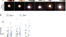 Cornea and anterior chamber phenotypes were examined with a slit-lamp (SL-D7; Topcon) and photo-documented with a digital camera (D100; Nikon)38.