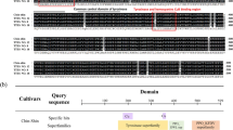 Next, we examined each of the 925,854 high-quality SNP sites and identified signature SNPs that could be used to separate different groups of tea accessions. As shown in Table 1, the largest difference was observed between group 1 and the other groups, differing in 6838–13,534 SNP locations. In contrast, the numbers of SNP sites that separated the remaining groups were much smaller, reflecting a closer relationship among middle/small-leaved tea accessions. Notably, on 8187 SNP sites, group 1 possessed different major alleles from the other four groups, representing genetic divergence between CSA and CSS lineages. Signature SNPs were also found on genes that are known to be involved in the biosynthesis of characteristic metabolites in tea. For example, two genes involved in catechin and caffeine biosynthesis, namely, LAR (TEA027582, encoding a leucoanthocyanidin reductase) and TCS (TEA015791, encoding a caffeine synthase), contained several SNP sites on which the major alleles varied among different groups, with some being non-synonymous (Supplementary Fig. 1). Non-synonymous mutations cause changes in protein sequence, and could change protein function/enzyme activity. LAR is an important enzyme in the catechin biosynthesis pathway and is responsible for converting leucocyanidin/leucodelphindin to C/GC. Previous evolutionary analysis showed that extensive sequence diversity exists among LAR genes in different plants as well as among three LAR homologs in tea40. TEA026582 exhibited more than 10-fold higher expression than the other two LAR homologs in our samples and thus likely had a major functional role. Although the two non-synonymous SNPs that we discovered here are not located within the three well-conserved LAR-specific motifs (RFLP, ICCN, and THD) or at the known substrate-binding sites40, they may still cause change in enzyme activity and thus are worth further investigation. Tea caffeine synthase (TCS) is a N-methyltransferase that converts 7-methylxanthine to theobromine (theobromine synthase or TS activity) and theobromine to caffeine (caffeine synthase or CS activity) and has a major role in the caffeine synthesis pathway41. There are 11 TCS homologs in the tea genome, among which TEA015791 (TCS1) has the highest expression level and has a predominant role. It has been shown that there are at least six natural TCS1 alleles (named TCS1a to TCS1f, respectively) in different tea accessions41. Furthermore, different TCS1 alleles exhibit significant difference in TS and CS activities. While TCS1a and TCS1d-f have both TS and CS activities, TCS1a has a lower CS/TS ratio than TCS1d-f41. TCS1b-c have only TS activity, resulting high level of theobromine and almost no caffeine in the two “caffeine-free” wild tea accessions “Hongyacha” and Cocoa tea (C. ptilophylla Chang)42. Amino acid residue variations on our non-synonymous SNP sites indicate that in CSS accessions TCS1a is the dominant TCS1 allele, whereas in CSA accessions, a TCS1d/f- like allele is the major allele. The enzyme activity difference of the major TCS1 allele may affect the theobromine and caffeine accumulation levels in different tea accessions.