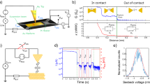 Clean borosilicate glass substrates were treated with UV-ozone for 20 min. Four parallel line-shaped Au electrodes (Au line-width: 0.5 mm; channel width: 4.5 mm; and channel length: 1 mm) for the 4-point probe electrical conductivity measurement and two parallel line-shaped Au electrodes (Au line-width: 1.5 mm; channel width: 6 mm; and channel length: 6 mm) for the Seebeck coefficient test were deposited on the clean glass substrates. Various doped fullerene derivative films were prepared on the electrode-coated substrates. The area of the doped organic films outside the region defined by the electrodes was scratched to prevent geometric effects. The four-point-probe measurements were performed using a Keithley 4200 SCS parameter analyzer in an N2-controlled environment. The I–V plots are displayed in Supplementary Fig. S6. The electrical conductivity was calculated using σ = (I/V)L/(wd), where L = 1 mm, w = 4.5 mm and d denote the channel length, width and thickness of the doped organic film, respectively. The reported values in the main text were obtained by averaging the results for six devices. The Seebeck coefficients of the various doped fullerene derivative films were measured using a setup that was developed in-house, as reported previously20. Two Peltier devices were placed in parallel separated by a 6-mm gap on a heat sink. The temperatures of these devices were controlled by two independent proportional-integral-derivative controllers. Two rectangular Au electrodes (width: 1.5 mm and length: 6 mm) were deposited on the glass substrate separated by a distance of 6 mm. Two T-type thermocouples (127 m from Omega) were used as probes to simultaneously measure the temperature and thermal voltage. A silver paste (ELECTRODAG 1415) was used to connect the thermocouple probes with the Au electrodes. A Keithley 2000 mounted with a scanner card was used for signal recording with a delay time of 100 ms. The system was controlled by Labview software. Thermal voltage (V) shifts were eliminated using a quasi-static approach by slowly changing the temperature: the temperature difference (T) was used to extract a T–V plot, and a linear fitting was performed to derive the Seebeck coefficient. The thermal conductivity was measured using a Linseis thin film analyzer setup employing the 3-omega (3ω) method55.