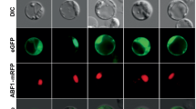 A fragment containing the 1-kb upstream and coding regions of each MoHTR gene was inserted to pFPL-Rh vector40 for MoHTR:mRFP expression. Plasmids containing PWL2pro:PWL2:eGFP:NLS and BAS4pro:BAS4sp:eGFP11 were used to label plant nuclei and EIHM compartment, respectively. After inoculating rice sheaths with fungal transformants, the location of each protein was microscopically imaged. pFPL-Rh vectors that express each MoHTR-Δsp:mRFP under control of the Fusarium verticillioides EF1α promoter were used to investigate the localization of individual MoHTRs in fungal cells. Fungal transformants expressing these recombinant proteins were generated via PEG-mediated transformation. Their expression was confirmed by microscopically observing the fluorescent signal in the conidia of individual transformants. MoHTR1-Δsp and MoHTR2-Δsp were cloned into pENTRTM/D-TOPO (Invitrogen) to determine their localization in the rice cytoplasm. After confirming the presence of each insert via sequencing, these constructs were moved to the destination vector p7FGW2 for C-terminal GFP fusion41 using the Gateway LR clonase (Invitrogen). The primers used for fungal transformation are listed in Supplementary Table 11. The resulting constructs were introduced into rice mesophyll protoplasts using PEG-calcium mediated transformation method42. OsABF1:mRFP was used to label plant nuclei23.