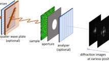 We demonstrated high-visibility MOKE imaging of two representative magnetisation reversal processes in ferromagnetic media: domain nucleation (annealed Co/Pt film, Fig. 3d) and domain wall propagation (non-annealed Pt/Co/Pt/Ta film36,37, Fig. 3e). In the experiment, all of the magnetic domains of the 1-nm-thin Co medium were magnetised initially in the +z direction, and then an external magnetic field (320 G for Co/Pt, 100 G for Pt/Co/Pt/Ta) in the −z direction was applied to trigger magnetisation reversal. For the Co/Pt film, EAR MOKE imaging under a 660 ± 5 nm light-emitting diode illumination resolves the magnetic domains with opposite vertical magnetisations, with high visibility of 0.47 on average over the field of view. The angle and extinction ratio of the employed analyser were 10° and ~103, respectively. The combination of the high visibility and the large analyser angle increases the accuracy of solving the quadratic equation for extracting vertical magnetisation from the MOKE intensity data (Supplementary Note 4). We were able to determine not only the direction but also the magnitude of the net vertical magnetisation of the magnetic domains within the resolution area of the objective. In the EAR Pt/Co/Pt/Ta film, the domain wall propagation, showing irregular development owing to the Barkhausen jumps, was clearly measurable, with high visibility of ~0.14. Note that, under the same measurement conditions, the visibility of the bare Co/Pt (Pt/Co/Pt/Ta) film was only ~0.025 (~4.6 × 10−4) (Supplementary Note 6).