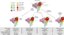 Although the overall architectures of two mini RTCs are generally similar, the conformations of nsp13-1 have a distinct shift (Fig. 3a). In the alignment of two forms of mini RTC, nsp7–nsp8–nsp12 and nsp13-2 present a r.m.s.d of 0.429 Å for 1905 Cα atoms, suggesting their highly similar conformations. However, nsp13-1 in form 1 mini RTC has a ~10 Å movement towards nsp13-2, compared with they are in form 2 mini RTC. In mini RTC, nsp13 molecules have three major contacting regions (regions 1, 2, and 3) and two minor regions (regions 4 and 5) with nsp7–nsp8–nsp12 or with each other (Fig. 3b and Supplementary Fig. 8). Region 1 includes the interaction between nsp13-1 1B domain and nsp12 Interface; region 2 includes the interaction between nsp13-1 ZBD domain and nsp8-1 helical domain; region 3 includes the 1B interaction between nsp13-1 and nsp13-2; region 4 includes one main chain hydrogen bond interaction between nsp13-2 ZBD and nsp8-2; region 5 includes a faint hydrophobic contact between nsp13-2 1A and nsp12. The movement of nsp13-1 results in distinct variations on its interaction with other components in region 1 and 3, and minor difference in region 2 (Fig. 3c–h and Supplementary Fig. 8); whereas, the interactions in region 4 and region 5 are identical in two forms of mini RTC. In form 1 mini RTC, nsp13-1 employ nsp13-1Q194 and nsp13-1H320 in the 1B domain to contact with the interface domain of nsp12 in region 1. In region 2, two hydrogen bonds are formed between nsp13-1N46 (in ZBD) and nsp8-1Q73, nsp13-1Y93 (in ZBD) and nsp8-1Y71; nsp13-1F80 and nsp13-1L91 (in ZBD) make hydrophobic contact with nsp8-1M70. In region 3, nsp13-2T216 binds with the carbonyl oxygen atom of nsp13-1R248 and backbone of nsp13-1V247, and nsp13-2Y217 contact nsp13-1E244 with a hydrogen bond. In contrast in form 2 mini RTC, nsp13-1H320 and nsp13-1Q194 move away from the interface domain of nsp12, losing the two hydrogen bonds in region 1. And in region 3, nsp13-1E244 and nsp13-1R248 in nsp13-1 1B domain also lost their interactions with nsp13-2Y217 and nsp13-2T216 of nsp13-2 1B domain.