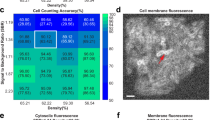 Voxel-level classification by CNNs generates different confidence maps (one confidence map for each annotation class). The confidence values range between 0 and 1, and represent the confidence of assigning individual voxels to a given class. After thresholding the “cell interior” confidence map to obtain a binary image (Supplementary Fig. S11a–c), connected voxel clusters can be isolated and identified as single-cell objects using 3D connected component labeling75. A conservative size-exclusion filter was applied: small objects with a volume approximately ten times less than the expected cell size were considered background noise and filtered out using an area open operator75. Since the cell-interior volumes do not contain the cell boundaries, we dilated each object by 1–2 voxels to increase the cell volumes using standard morphological dilation75. The threshold value to segment individual cell objects based on the “cell interior” confidence map was determined by plotting the overall voxel-level segmentation accuracy, quantified as the IoU value (aka Jaccard index76) vs. the confidence value thresholds (Supplementary Fig. S11d, e). Optimal voxel-level segmentation accuracies were consistently obtained using confidence thresholds between 0.88 and 0.94. Throughout this work, we use 0.94 for cells labeled with intracellular fluorophores and 0.88 for cells labeled with membrane-localized fluorophores.