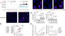 DNA-FISH was performed as previously described46. Cells were plated onto glass coverslips the day before fixation. Cells were pre-treated with digitonin (150 μg/ml) in Cytoskeletal (CSK) Buffer (100 mM NaCl, 300 mM sucrose, 3 mM MgCl2, 10 mM PIPES pH 6.8), then fixed in 4% paraformaldehyde. Cells were permeabilized with 0.2% (v/v) Triton X-100 (Sigma, X100) in PBS, soaked in liquid nitrogen, treated in 0.1 M HCl and dehydrated in EtOH. We used the fluorescent labelled probes corresponding to the following BAC clones (Empire Genomics): 5-fluorescein-labelled RP11-57I3 (NRG1 gene body, ‘gene probe’), 5-TAMRA-labelled RP11-451O18 (NRG1 neighbouring region, ‘TAD probe’), 5-fluorescein-labelled RP11-185D13 (HMGA2 gene body, ‘gene probe’) and 5-TAMRA-labelled RP11-63F4 (HMGA2 neighbouring region, ‘TAD probe’). Confocal images were obtained using a Leica TCS SP8 microscope.