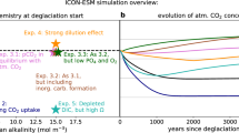 The carbon cycle model used in this work was previously derived as a two-box model21, where the atmosphere–ocean and the seafloor pore space were separated. In this work, we combine the ocean–atmosphere and the pore space into a single unit. This modification can be implemented in the original model21 by assuming that the pH of the pore space is the same as the pH of the ocean, and assuming that the alkalinity and carbon content of the ocean and pore space are the same. The dissolution and precipitation fluxes can then be calculated without treating the ocean–atmosphere and the pore space as different systems. This modification allows the model to converge quicker over a wider range of parameter combinations.