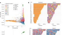 Paired-end reads with length of 162 bp from the three donors (jg1a, jg1b, and jg1c) were individually mapped to hs37d5.fa, and variant calling was performed following GATK best practices41. The resulting VCF file was subjected to PCA using EIGENSOFT software (ver. 4.2). We chose 310 Japanese samples from the 3.5KJPNv2 cohort41; 100 from Miyagi Prefecture in northern Japan; 29 from Nagahama City, in western Japan; and 181 from Nagasaki Prefecture, in southern Japan. Variants shared among the 313 samples were selected and filtered using plink software (ver. 1.9) with the ‘--geno 0.05 --maf 0.05 --hwe 0.05’, and ‘--indep-pairwise 1500 150 0.03’ options. The resulting dataset consisted of 18,658 variants.
