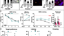 Electrophysiological recordings were performed within 14 days after chABC injections since it has been shown that less than 40% of PNNs are reassembled by that time26. The recording system used was daqUSB, provided by Axona (Herts, UK). Signals were amplified 8000–15,000 times and band-pass filtered between 0.8 and 6.7 kHz. Triggered spikes were stored to disk at 48 kHz (50 samples per waveform, 8 bits/sample) with a 32-bit timestamp (clock rate at 96 kHz). Spike waveforms above a threshold of 50 μV were time-stamped and digitized at 32 kHz for 1 ms, and saved to the hard-drive for offline analysis. One channel in each hemisphere served as a reference electrode to record LFP; LFP signals were amplified 3000 times, low-pass filtered at 500 Hz, and stored at 4.8 kHz (16 bits/sample).
