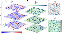 where ξ(x, t) is Gaussian white noise with variance \(\left\langle {\xi }^{i}({\bf{x}},t){\xi }^{j}({\bf{x}}^{\prime} ,t^{\prime} )\right\rangle ={\delta }^{ij}\delta ({\bf{x}}-{\bf{x}}^{\prime} )\delta (t-t^{\prime} )\), D is a relaxation constant, and \(\delta {\mathcal{F}}/\delta \phi\) is the functional derivative with respect to ϕ of the free energy \({\mathcal{F}}\) given by: