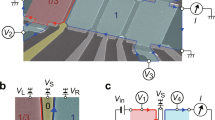 The devices were fabricated from a standard GaAs/AlGaAs heterostructure with a two-dimensional electron gas (2DEG) located 100 nm below the surface having an electron density of 1.85 × 1011 cm−2 in the dark and 2.07 × 1011 cm−2 after light irradiation at low temperature. After patterning holes into the 2DEG for the Corbino geometry, ohmic contacts were formed by alloying Au–Ge–Ni metal films; subsequently metal gates were patterned using photolithography and electron-beam lithography (see Supplementary Note 1 for details).