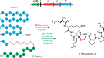 May, J. J., Wendrich, T. M. & Marahiel, M. A. The dhb operon of Bacillus subtilis encodes the biosynthetic template for the catecholic siderophore 2,3-dihydroxybenzoate-glycine-threonine trimeric ester bacillibactin. J. Biol. Chem. 276, 7209–7217 (2001).