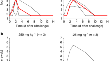 On days 2, 4, 5, 7, 8, and 10, a five-french feeding tube was inserted into the nasal cavity. In all, 2 ml PBS was instilled through each nostril and the maximum volume was aspirated, secretions were spun at 800 × g for 10 min and 1 ml of supernatant and cell pellet were lysed in 3 ml Trizol LS for RNA isolation. Ethylenediaminetetraacetic acid-anticoagulated blood was collected on Days 0, 2, 4, 7, and 10 for immunophenotyping. PBMCs were isolated from whole blood collected in cell preparation vacutainer tubes, sampled at Day 7 and necropsy, by density gradient centrifugation50. For serum, coagulated blood was centrifuged at 800 g for 10 min to pellet clotted cells, followed by extraction of supernatant and storage at −80 °C. Lymph nodes, spleen, and lung tissue were obtained at necropsy and digested enzymatically using collagenase followed by manual disruption to obtain single-cell suspensions for flow cytometry-based assays. Data from whole blood samples were generated in real-time and were repeated once.