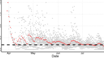 One limitation of our model is to assume mobility as a direct proxy for contact rates. Although it has been suggested there is a high correlation between the two45, this relationship is complex. As can be seen from Eq. (10), the reproduction number is affected by SD and α. From the equation, we can see that if α is zero (i.e. the population is doing no protective measures), the effect of SD in reducing the disease’s transmission corresponds to its value. Nevertheless, our model assumes that at the beginning of the pandemic, when people are still not engaged in protective behavior, an increase in SD greatly impacts transmission. Such correspondence between SD as measured from mobility data from cellphones has been recently observed46,47. However, as time advances and α increases, the corresponding effect of SD in Rt decreases. In the unlikely boundary case where protection reaches 100% (i.e. every person is doing every possible protective measure), SD does not affect Rt as Rt equals zero. Such a decrease in correlation between SD and Rt has also been observed as some countries have started opening their economies. Although SD has linearly decreased12, there was no corresponding increase in Rt, as seen in the daily new cases’ curves (e.g. United Kingdom and Italy2). To illustrate, Fig. 7a shows how the effect of a 45% SD in reducing Rt changes as protection increase from 0 to 100%. In practical terms, the first change in mobility occurred at the beginning of the pandemic, when people were not yet engaged in protective behavior. However, at the time of re-opening, people increased mobility, but with much greater caution and knowledge on reducing the possibility of infection. Given the possible inherent error of determining SD by noisy mobility data (Fig. 6), we ran a sensitivity analysis to understand better the effect in the model of the magnitude of SD on all other parameters, specially α. Thus, we further ran the optimization process 20 times, considering 5% decrements to the magnitude of SD on each run. As expected, decreases in SD magnitude were significantly correlated to increases in Protection (R2 = 0.72; p < 0.001; Fig. 7b). By using the corresponding regression line, we estimated that considering a drop up to 50% in the magnitude of SD, or analogously consider a drop in the efficiency of mobility to affect β by up to 50% (Eqs. 1 and 3), protection levels would increase by approximately 5%. Thus, we used a range of +5% in our reported results in the text.
