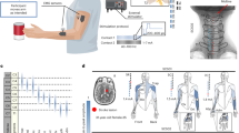 As observed in monkeys, the muscular recruitment profiles obtained in the 5 patients tended to reflect a segmental rostro-caudal innervation of the upper-limb muscles (Fig. 9c). However, the correlation was qualitatively less marked, and the stimulation specificity appeared poorer compared to monkeys. For instance, the deltoid and biceps could not be activated independently from the triceps or from hand muscles, and reciprocally for the triceps. However, this limited measured performance might be due to the conditions of the clinical procedures as well as to the inappropriate dimensions of the paddle epidural array (see “Discussion”).