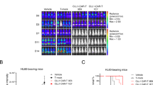 NSG mice were produced at the Genotoul Anexplo platform at Toulouse (France) using breeders obtained from Charles River Laboratories. Transplanted mice were treated with antibiotic (Baytril) for the duration of the experiment. For experiments assessing the response to chemotherapy in PDX models, mice (6–9 week old) were sublethally treated with busulfan (30 mg/kg) 24 h before injection of leukemic cells. Leukemia samples were thawed in 37 °C water bath, washed in IMDM 20% FBS, and suspended in Hank’s balanced salt solution at a final concentration of 1–10 × 106 cells per 200 μl for tail vein injection in NSG mice; 8–18 weeks after AML cell transplantation and when mice were engrafted (tested by flow cytometry on peripheral blood or bone marrow aspirates), NSG mice were treated by daily intraperitoneal injection of 60 mg/kg AraC or vehicle (PBS) for 5 days. AraC was kindly provided by the pharmacy of the TUH. Mice were sacrificed at day 8 to harvest human leukemic cells from murine bone marrow. For AML cell lines, mice were treated with busulfan (20 mg/kg) 24 h before injection of leukemic cells. Then cells were thawed and washed as previously described, suspended in HBSS at a final concentration of 2 × 106 per 200 μl before injecting into the bloodstream of NSG mice. For experiments using inducible shRNAs, doxycycline (0.2 mg/ml + 1% sucrose; Sigma-Aldrich, Cat# D9891) was added to drinking water, the day of cell injection or 10 days after until the end of the experiment. Mice were treated by daily intraperitoneal injection of 30 mg/kg AraC for 5 days and sacrificed at day 8. Daily monitoring of mice for symptoms of disease (ruffled coat, hunched back, weakness, and reduced mobility) determined the time of sacrificing for injected animals with signs of distress.