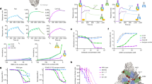 Epitope mapping was performed using a SARS-CoV-2 (strain Wuhan-Hu-1, QHD43416.1) S protein RBD shotgun mutagenesis mutation library39. A full-length expression construct for S protein, where 184 residues of the RBD (between residues 335–526) were individually mutated to alanine, and alanine residues to serine. Mutations were confirmed by DNA sequencing, and clones arrayed in a 384-well plate, one mutant per well. Binding of mAbs to each mutant clone in the alanine scanning library was determined, in duplicate, by high-throughput flow cytometry. Each S protein mutant was transfected into HEK-293T cells and allowed to express for 22 h. Cells were fixed in 4% (v/v) paraformaldehyde (Electron Microscopy Sciences), and permeabilized with 0.1% (w/v) saponin (Sigma-Aldrich) in PBS plus calcium and magnesium (PBS++) before incubation with mAbs diluted in PBS++, 10% normal goat serum (Sigma), and 0.1% saponin. The mAb screening concentrations were determined using an independent immunofluorescence titration curve against cells expressing WT S protein to ensure that signals were within the linear range of detection. Antibodies were detected using 3.75 μg/mL of AlexaFluor488-conjugated secondary antibody in 10% normal goat serum with 0.1% saponin. Cells were washed three times with PBS++/0.1% saponin followed by two washes in PBS and mean cellular fluorescence was detected using a high-throughput Intellicyte iQue flow cytometer (Sartorius). Antibody reactivity against each mutant S protein clone was calculated relative to WT S protein reactivity by subtracting the signal from mock-transfected controls and normalizing to the signal from WT S-transfected controls. Mutations within clones were identified as critical to the mAb epitope if they did not support reactivity of the test mAb, but supported reactivity of other SARS-CoV-2 antibodies. This counter-screen strategy facilitates the exclusion of S mutants that are locally misfolded or have an expression defect. Validated critical residues represent amino acids whose side chains make the highest energetic contributions to the mAb–epitope interaction.