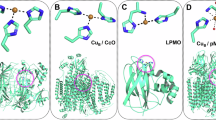 Since the C367D mutation prevents the formation of Hinact and gives back CbA5H standard catalytic properties, we assume that the structure of the active form A1 of CbA5H is similar to that of standard hydrogenases, and that the difference between the structures of CpI and CbA5H shown in Fig. 2e illustrates the conformational change that occurs upon the formation of Hinact from the active form A1 of the enzyme. The conversion between the active forms A1 and A2 occurs on the time scale of seconds (1/(k1 + k−1) =10 s) which implies that there must be a large activation energy barrier to overcome, probably due to a conformational change. In state A2, C367 cannot be bound to Fed, since A2 is still active (about half as active as A1, Supplementary Figure 12). The binding of the cysteine sulfur to Fed must therefore occur in the final step (A2 to I). That this bond is labile \(\left( {1/({\mathrm{k}}_{{\mathrm{inact}}} + {\mathrm{k}}_{\mathrm{react}}) \simeq 1} \right.\)s at high potential) is consistent with the relatively long distance of 3.1 Å between Fed and the S-atom of C367 observed in the structure of air-oxidized CbA5HWT. The reactivation from Hinact to A2 is the only step whose rate constant (kreact) depends on pH and the applied potential, showing that reactivation is triggered by a reduction step coupled to a protonation. At high potential, the reactivation rate constant kreact is lower than the inactivation rate constant kinact, locking down the enzyme in the Hinact state. The fact that kinact is potential-independent points to a classical “CE” mechanism for step 2, in which one or a series of chemical step(s) (“C”) precede(s) proton-coupled oxidation (“E”). Strong coupling implies that the sites of deprotonation and oxidation are very close to one another. We therefore consider likely that this deprotonation occurs from the nitrogen atom of the azaditiolate bridge, or from the bound cysteine, to produce a thiolate ligand.
