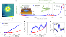 We define the EXPC strength using the Huang–Rhys factor, S, in the framework of the Franck–Condon coupling model56 (see Supplementary Note 7 for a definition of S), with the minimum number of states needed to describe the observed data (Fig. 3a). The model of Fig. 3a delivers 3 transition energies, as observed experimentally (purple crosses in Fig. 2a). We assign component 1 (with the lowest energy \(\hbar \omega _1\)) to the transition between \(\left| {{\mathrm{g}}_1} \right\rangle\) and \(\left| {{\mathrm{e}}_0} \right\rangle\) (blue in Fig. 3), component 2 (with a higher energy \(\hbar \omega _2\)) to the two degenerate transitions between \(\left| {{\mathrm{g}}_0} \right\rangle\) and \(\left| {{\mathrm{e}}_0} \right\rangle\) and between \(\left| {{\mathrm{g}}_1} \right\rangle\) and \(\left| {{\mathrm{e}}_1} \right\rangle\) (black and green, respectively), and component 3 (with the highest energy \(\hbar \omega _3\)) to the transition between \(\left| {{\mathrm{g}}_0} \right\rangle\) and \(\left| {{\mathrm{e}}_1} \right\rangle\) (red).