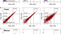We opted for growth conditions that would accommodate many species of yeast67; all 11 strains were grown in a custom rich media at 30 °C (Supplementary Fig. 9). For each species, we selected an isogenic population from streaked plates, then incubated cultures overnight. We used the overnight culture to inoculate two identical 125 mL Erlenmeyer flasks containing 20 mL of rich media each. After approximately 6 generations of log phase growth, around OD600 of 0.3, we added H2O2 to one flask to a final concentration of 1.5 mM; after 30 min, the yeast cells were harvested and frozen from both the stressed and the unstressed flask. We chose a concentration of 1.5 mM hydrogen peroxide as we found that this concentration would approximately halve the growth rate for the species included in our study (Supplementary Fig. 10); a treatment period of 30 min of H2O2was selected to capture the greatest variation in expression during stress response68. For each sample, four 1.5 mL centrifuge tubes of cell culture were extracted, centrifuged at 4 °C, and then frozen at −80 °C. This protocol was slightly modified for the ribosome profiling experiments to account for the increased demand in raw material for the sequencing protocol (see Ribosome profiling section below).