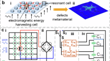 As the TE and SE of S-TENG are connected in parallel, the Jsc of TE can be tested in a dark condition while the Voc cannot be directly measured. This is because the parallel connection of the SE has a much lower internal resistance than TE. However, the SE part cannot be removed to test TE. So, a connection change method is used to test the output of a single-electrode TENG under the same condition. The result is expected to roughly estimate the output of TE which is based on a single-electrode mode. The positive electrode of Keithley 6514 was connected with one electrode of S-TENG and the negative electrode Keithley 6514 was grounded. The measurements were all carried out by moving stage of a force gauge towards and away from the S-TENG in a single-electrode TENG connection for accurate and repeatable motion control. As shown in Fig. 4e, the Voc and charge is 80 V and 34 nC, respectively. Figure 4f demonstrates the dependence of output peak current density and peak power density on load resistance ranging from 5 Ω to 10.5 GΩ. The maximum power is about 0.28 μW cm−2 when the resistance is 8 GΩ.