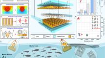 A cleaned n-type Si wafer (15 cm2) with thickness of 530 μm was used to be a substrate of S-TENG. 15 nm Au was coated on the n-type Si by thermal evaporator. A gap in the Au film was added by removing its middle part by 1 cm. After the Au film in the middle being removed, PDMS film was fabricated on the Au film by a doctor-blade technique40, followed by thermal annealling at 60 °C for 2 h. Then the S-TENG was fabricated. For fabrication of the energy ball, the as-fabricated S-TENG was fixed in a large transparent plastic sphere with an 8 cm diameter. A little Al ball (with a diameter of 2.5 cm) was put on the S-TENG to be a moving object for casting shadow on S-TENG. A counterweight is arranged in the bottom of energy ball, which provides balance and stability of the energy ball in water. The F-SCs were embedded under the S-TENG. The S-TENG and the F-SCs were connected by a small full-wave rectifier.