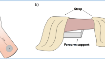 The participants were also informed that at t = 10 s the guide line would disappear and then re-appear at t = 20 s, and that their task meanwhile was to keep the applied force constant without visual feedback. Each trial lasted 30 s and trials were repeated three times per participant with force setpoints pseudo-randomized. Before data collection, all participants were allowed one test trial to familiarize themselves with the task. Recorded data were analyzed using Matlab48; data were smoothed over a 1 s window and trials were averaged. Performance was measured as the mean deviation from the target setpoint (MD (t)) at a given time point \(MD\left( t \right) = \sqrt {(SP(t) - AV(t))^2}\) where SP is a setpoint value and AV actual readout value. For numerical analysis of MD(t) the last 5 s of the trial were averaged.