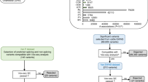 This step was based on the metric \(\rho _{ij} = r_{{\mathrm{cor}}}( {t_{{\mathrm{variant}}_i},t_{{\mathrm{variant}}_j}} ) \times r_{{\mathrm{LD}}}( {{\mathrm{variant}}_i,{\mathrm{variant}}_j} )\) (1) within each sex. The motivation behind ρij was that the combined measure of the genotype correlation and effect correlation between variant pairs was expected to capture sequence variants tagging the same QTL. The reason for choosing 5 Mb as the size of the sliding-window was that it was likely to be large enough to see the differentiation of distributions of LD between sequence variants and to potentially include several QTL. ρ was computed for all variant pairs within 5 Mb sliding-windows (step was 2.5 Mb). Within each window, variant pair ρ values were clustered using graph-based Random Walks determining densely connected subgraphs (clusters)43 implemented in igraph44. Up to 50 clusters were retrieved in each window and in total, 30,514 clusters were retrieved in bulls and 30,440 were retrieved in cows. There were 1–98 (average 11.9) variants per cluster in bulls and 1–92 (average 11.7) variants per cluster in cows. The Random Walks algorithm was chosen because of its clustering capability for a dense network with high computational efficiency43. The Random Walks algorithm can be operated at an agglomerative mode which learns the hierarchy of a network, and this was similar to the conventional hierarchical cluster algorithms which tend to be much less efficient. The hierarchical tree for each sliding-window was cut to form individual clusters by assuming that up to 50 clusters could be reasonably formed to represent QTL within each 5 Mb window. Within each cluster, unique variant members were determined and ranked based on their multi-trait p-value adjusted by the FAETH score. Then variants ranked within the top 50% (inclusive) were chosen as the prioritized variants. The R codes of variant clustering with test datasets are available at https://github.com/rxiangr/SNP_cluster_ranking.