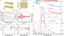 More importantly, the giant anisotropy provides an avenue to resolve the fundamental limitations of isotropic materials. In this regard, the extreme skin-depth (e-skid) waveguide in Fig. 5 epitomizes the importance of a highly anisotropic material as an essential building block for next-generation photonics41. This phenomenon originates from the general law of total internal reflection (TIR). In the classical case, if n2 > n1, where n1 and n2 are the refractive indices of the medium 1 and 2 in Fig. 5a, and the incident angle is greater than the critical angle, light is reflected in the second medium and decays in the first. This effect is in the core of telecommunication technologies for guiding light at vast distances since light reflects without power loss. However, reducing the thickness of standard (typically Si) optical waveguides down to the nanometric scale introduces a considerable difficulty. As illustrated in Fig. 5a, b and e, f, the electromagnetic mode confinement in the optically less dense material significantly weakens. It restricts photonic integrated circuit miniaturization because of the cross-talk (electric field overlapping between adjacent waveguides)42. The solution to the problem is a generalized TIR form, which relaxes the condition n2 > n1 to n2 > nc (Fig. 5c), where nc is the out-of-plane refractive index of the first anisotropic medium43. Counterintuitively, the in-plane refractive index nab could have any value even higher than n2. More interestingly, the greater nab, the better the light confinement inside the waveguide core (Fig. 5d), allowing us to get closer to the diffraction limit λ/2ncore, where λ is the wavelength of light and ncore is the refractive index of the waveguide core. To experimentally demonstrate the effect, we covered a 285 nm-thick MoS2 flake with 190 nm-thick silicon (“Methods”) to form a planar e-skid waveguide Air/Si/MoS2. Although MoS2 is better than air for light confinement, we left one of the silicon slab faces uncovered to visualize the mode by near-field measurements shown in Fig. 5i–l. The waveguiding mode measured dispersion is in close agreement with the theoretical calculations, thus validating the e-skid waveguide concept for light confinement and, consequently, miniaturized photonic integrated circuits. It is worth mentioning that MoS2 yields markedly better light confinement than recently introduced metamaterial41 of alternating layers of Si and SiO2 (Fig. 5f) since MoS2 is a natural metamaterial with molybdenum, sulfur, and vdW gap varying layers (Fig. 5c, d). Finally, the proposed approach leads to another concept of a vertical integrated circuit, which has been recently proved to provide a useful degree of freedom for efficient light manipulation44.