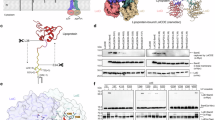 The LovB–C interface is approximately 522 Å2, which is mainly contributed by several residues in the loop region of LovC and α helices of the MAT domain (Fig. 4c). To further verify the binding site, the interaction loops in LovC were mutated (T271L, R272I, K273G, and M274A). In parallel, three mutants of the MAT domain were also designed (MAT Mut1–3). Mut1 had E747A, D748A, E749A, and S750A mutations; Mut2 had H741A and G744A mutations; and Mut3 had D713A and A714S mutations. The mutant of LovC, the MAT domain and its mutants of LovB were cloned, expressed, and purified. Then the purified mutant proteins of the LovC and MAT domain were mixed and incubated for protein complex formation. Figure 4d shows that in contrast to the control incubation that contains the WT LovC and MAT domain protein, which coelute during size exclusion chromatography at 15 ml, mutation of the interacting loop on LovC disrupts the interaction. The LovC mutant and MAT domain protein elute separately. At the same time, the MAT domain Mut1 abolished interaction with LovC (Supplementary Fig. 10). These observations suggest that the loop within LovC and the helix of MAT domain of LovB are essential for the formation of the LovBC complex.