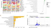Fresh feces samples were collected 3–4 h into the light cycle, snap frozen and stored at −80 °C until downstream processing. Bacterial DNA from fecal samples was extracted using a NucleoSpin soil kit (Macherey-Nagel) according to manufacturer’s instructions. 16 S rRNA gene amplification was performed using 515 F and 806 R primers and sequenced with 250PE on Ilumina MiSeq. USEARCH68 and mothur69 were used for the processing of the sequence data. Sequences were strictly dereplicated, discarding clusters smaller than 5. Sequences were clustered at 97% sequence similarity. Additional suspected chimeric operational taxonomic units (OTUs) were discarded on the basis of comparison with Ribosomal Database Project classifier training set v917 using UCHIME70. Taxonomic assignment of OTUs was done using the database from Ribosomal Database Project17. Initial data processing was performed as described elsewhere71. Data was rarefied to 23,107 reads per sample. The principal coordinate analysis (PCoA) was conducted based on the weighted UniFrac distance. To select OTUs and species enriched in different subgroups, DESeq272 with default settings was used. The relative abundances of OTUs were aggregated to genus level. Genera present in >1/3 of the samples were used in the differential abundance testing. Genera with p.adj. < 0.05 comparing the last sampling point for WDREF/WDCNTL vs WDMcB with DESeq2 differential expression analysis based on the negative binomial distribution were reported. Permutational multivariate analysis of variance (permanova) using weighted UniFrac distance matrices (Adonis, Vegan R package) was used to evaluate overall microbial compositions.