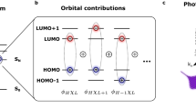 Equation (11) corresponds to Eq. (2) with y0 = 1 and \(A = 1 - n_{{\mathrm{dyes}}}^{ - 1}\). A quantum-statistical description of photon correlations in an n-chromophore system, using a master equation approach, is given in the Supplementary Information together with Supplementary Figs. 11–13. Note that the assumption of any specific decay law for singlet–singlet annihilation such as an exponential decay according to \({e}^{ - k_{{\mathrm{SSA}}}t}\) is not strictly necessary. To that end, psTRAB \(N_{\mathrm{c}}/N_\ell\) can be used to directly measure the decay law associated with exciton–exciton interactions, which is connected to the mean first passage time of the random walk performed by the excitons. The technique can obviously be extended to higher-order photon correlations, using more than one beam splitter in the Hanbury Brown and Twiss setup, to determine the functional difference between two-exciton interactions and higher-order contributions.