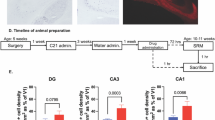 AAV-CAG-FLEX-Hrh1-GFP (AAV-CAG-FLEX-GFP as control virus), AAV-EF1α-DIO-hM3Dq-mCherry, and AAV-EF1α-DIO-hM4Di-mCherry were produced by OBiO Technology (Shanghai, China). Two-month-old mice were anesthetized by intraperitoneal injection of sodium pentobarbital (50 mg/kg) and placed in a stereotaxic apparatus (RWD Life Science, Shenzhen, China). The stereotaxic coordinates were AP + 0.75 mm, ML ± 0.8 mm, and DV − 5.0 mm for HDB injection, AP − 0.5 mm, ML ± 1.8 mm, and DV − 4.4 mm for NBM injection and AP + 0.98 mm, ML ± 1.5 mm, and DV − 3.2 mm for CPu injection. A total of 600 nl of virus was injected bilaterally into HDB, NBM, and CPu within 10 min. After surgery, mice were returned to the home cage and maintained for 4 weeks to ensure virus expression before behavioral tests. To avoid the potential interference from off-target viral expression, brains from animals receiving injection were perfused, sectioned, and checked by fluorescence microscopy for GFP or mCherry expression in the targeted region. Mice that had received inaccurate viral injection were excluded from all relevant analyses. For chemogenetic modulation, CNO was administered either by i.p. injections at 1 mg/kg or by intra-mPFC injections (3 μM, 100 nL) at 30 min before the behavior test. For intra-mPFC injection, 0.30 mm diameter bilateral cannulas (RWD Life Science, Shenzhen, China) were implanted into the mPFC (AP + 2.0 mm, ML ± 0.4 mm, and DV − 2.5 mm) 1 week before the CNO delivery and behavioral tests.