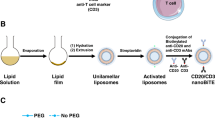 Bispecific antibodies (bsAbs), which comprise two antigen-recognizing elements that are capable of simultaneously binding two distinct targets, are emerging as a promising format of cancer immunotherapy. Blinatumomab (CD3 × B lymphocyte antigen CD19) has been utilized to treat B-cell acute lymphocytic leukemia with impressive clinical results, and more than 50 bsAbs are currently being evaluated for the treatment of hematological and solid tumors48. The unique and highly advantageous feature of bsAbs over monospecific antibodies is the capability of triggering contact between effector cells and tumor cells and consequently enhancing cytotoxicity, which is unachievable for the mixture of monospecific antibodies. We speculated that integrating the features of mAbs (immunomodulating function of immune cells) and bsAbs (facilitating co-engagement of immune cells and tumor cells) into one system could dramatically boost immunotherapy, and we proposed that nanoparticle immobilizing two types of mAbs targeting effector cells and tumor cells could be such a system.