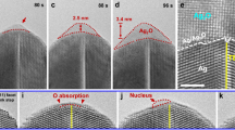 AgNWs were synthesized via a polyol method and then purified by a novel dynamic agitation-induced centrifugal filtration32. Si3N4 film (50-nm thick) grown on Si(100) single crystals were purchased from Prmat (Shanghai) Technology Co., Ltd. The inert Si3N4 films are nearly free of surface defects55 and remain stable under reaction conditions (see Supplementary Discussion). AgNWs in ethanol solution were drop-casted onto the Si3N4 substrate (denoted as Ag/Si3N4). We prepared three kinds of samples with different Ag densities (high, medium, and low). To acquire strong Auger spectra, samples with high NW density were used and shown in Fig. 4. Samples with medium AgNW density were used to get an obvious change of Ag/Si ratio during various treatments, also to make XPS peak intensity strong enough, shown in Figs. 1–3. Samples with low density were used in electron microscopy (SEM, STEM, PEEM) to observe the process easily. The effect of surface concentration in our experiments was excluded by SEM results (Supplementary Fig. 16). Ex situ treatments were performed in 1 mbar O2, 1 bar O2, or 100 mbar H2 at elevated temperatures in a high-pressure reactor (SPECS, HPC-20) (denoted as Ag/Si3N4-x-y, x is the atmosphere and y is the temperature).