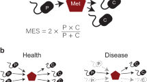 The salient aspects of our method are outlined in Fig. 1. We start with the known set of consumption and production links that were originally used by the model; these links are known from direct experiments and represent a ground-truth dataset or original cross-feeding network9. These are shown in Fig. 1a through the pink and blue arrows connecting nutrients 1 through 6 with microbes (a) through (c). For each sample, using only the species abundance from the microbiome, we use the model to quantitatively estimate the microbiome’s species and metabolomic composition. Briefly, we assume that a defined set of polysaccharides, common to human diets, are available as the nutrient intake to the gut (nutrients 1 and 4 in Fig. 1a). We calculate the microbiome and metabolome profiles separately for each individual, which contain a different set of microbial species in their guts. At the first trophic level, all microbial species that are capable of using the polysaccharides (indicated by the pink arrows in Fig. 1a) consume each of them in proportion to their abundances (microbes a, b, and c in Fig. 1a). They subsequently secrete a fixed fraction of the consumed nutrients as metabolic byproducts; every species at this trophic level secretes all the metabolic byproducts it is known to secrete (blue arrows in Fig. 1a) in equal proportion (nutrients 2–6 in Fig. 1a). At the next trophic level, all species detected in the individual’s gut which can consume the newly secreted byproducts consume them as nutrients, secreting a new set of byproducts, and this continues for four trophic levels (not shown in Fig. 1a for simplicity). At the end of this process, all metabolites which remain unconsumed by the community comprise the metabolome of the individual and the microbial species which consume nutrients and grow comprise the microbiome of the individual (for a complete description, see “Methods” and previous work20).