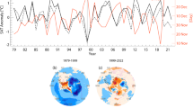 The relationships between the atmospheric circulation over the SO and tropical oceanic variability, often called ‘tropical-polar teleconnections’, have been examined in previous studies8,9,16,22,23,24,25,26,27,28,29,30,31,32,33,34,35,36,37,38,39,40,41. In the austral cold seasons, heating by anomalous sea surface temperatures (SSTs) in the tropical region generates a Rossby wave train from the tropics to the Antarctic region via the SO, influencing its teleconections8,9,22,23,24. By this mechanism, the El Niño-Southern Oscillation (ENSO) modulates the position and strength of the ASL16,22,23,25,26. Numerical experiments have shown that warming over the tropical Atlantic and Indian Oceans and cooling over the tropical eastern Pacific Ocean result in a deeper ASL and West Antarctic warming23. In addition, the longitudinal Indian Ocean SST contrast, known as the Indian Ocean Dipole (IOD), has a remote effect on the climate over the SH40,41. When the eastern Indian Ocean has a cold SST anomaly compared with the western Indian Ocean (positive phase of the IOD) without ENSO, the pressure anomaly is negative (positive) north (south) of the Ross Sea (Australia), promoting sea ice formation west of the Ross Sea41. However, a recent study has revealed considerable uncertainties in both the pattern and amplitude of the atmospheric response to ENSO due to interannual variability in the extratropics42. Various studies have reported strong Northern Hemisphere high-latitude atmospheric responses to atmospheric and oceanic forcing over the northern mid-latitudes43,44,45,46,47,48. However, no previous study has reported the impact of change in SSTs in the SH mid-latitudes on Antarctic climate variability.