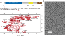 All proteins were expressed in E. coli Transetta (DE3) cells (Transgene, China). Unlabeled protein was expressed in 1 L Luria broth medium (Sangon Biotech, Shanghai) supplemented with 100 mg/mL ampicillin (Sangon Biotech, Shanghai) and the cells were induced for expression at an OD600 = 0.8–1.0 determined by a BIOMATE 3S UV–Visible Spectrophotometer (Thermo Fisher, USA). After 4 h of induction at 37 °C with 0.8 mM Isopropyl β-D-Thiogalactoside (Sangon Biotech, Shanghai), cells were harvested by centrifugation at 13,881 × g for 10 min and lysed by high pressure nano homogenizer (FB-110X, Shanghai Litu Ins., China) at about 850 bar in a buffer containing 50 mM Tris-HCl (pH 8.0), 300 mM NaCl, 2 mM phenylmethylsulfonyl fluoride (BBI Life Science), and 1 mM β-mercaptoethanol (Sigma). After centrifugation at 24,330 × g for 30 min, the pellet was dissolved in 20 mL dissolving buffer containing 6 M guanidine hydrochloride (GudHCl) (General-Reagent, Shanghai Titan Scientific), 50 mM Tris-HCl (pH8.0), and 300 mM NaCl. The mixture was again centrifuged at 24,330 × g for 30 min and the supernatant was incubated with Ni-NTA beads 6 FF (Smart-Life Science) at 4 °C for 30 min. The protein was later eluted from the beads using 15–20 mL dissolving buffer containing 250 mM imidazole (Sangon Biotech, Shanghai). Then the protein solution was dialyzed using 1 L pure water at 4 °C with Spectra/por@6 Dialysis Membranes (MWCO 3.5 K, W.45 mm, Diam 29 mm; BBI Life Science) and water was replaced twice after every 6 h. The protein precipitation was harvested by centrifugation at 24330×g for 10 min and dissolved again using 25% (v/v) acetic acid solution for further purification. The protein was finally purified by reverse phase high-performance liquid chromatography (Waters 2545) at room temperature with a linear gradient of 30–70% aqueous-organic solvent over 10 min at 10 mL/min using the XBridge@ Peptide BEH C18 column (130 Å pore, 5.0 µm beads, 19 mm × 100 mm column, Waters). Aqueous phase was Milli-Q H2O with 0.05% TFA and the organic phase is acetonitrile with 0.05% TFA. The purified protein was flash-frozen in liquid nitrogen and dried at −80 °C. Protein concentrations were determined by absorbance at wavelength of 280 nm.