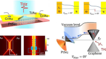 As another figure of merit, the dark noise related to thermal agitation of charge carriers, as well as the shot noise in a typical planer device, determine the sensitivity of detector. To evaluate the general performance of the detectors, we analyzed the noise spectra of the device as a function of frequency, and calculated the noise-equivalent power (NEP), which is the minimum detectable power for a signal-to-noise ratio of 1 (see Supplementary Fig. 2e for noise current spectral density). As reported in Fig. 2g, the experimentally derived minimum NEP is 4.9 pW Hz−1/2 at 0.04 THz, 19.6 pW Hz−1/2 at 0.12 THz, and 89.8 pW Hz−1/2 at 0.30 THz, respectively, consistent with the theoretical estimation (dashed line in Fig. 2g, see Methods for more information). Remarkably, the device performance remains stable and the devices maintain fast response time even after exposure in ambient conditions for one month. The total current in Fig. 2f and the resistance in Supplementary Fig. 2 showed no noticeable modification with time.