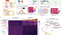 We next characterized metabolites that were enriched in four clusters and specific metabolite–cytokine correlations (Eq. (1), Methods). Interestingly, metabolites associated with arginine metabolism were enriched in clusters 2 and 3 (Fig. 3c). We observed an upward trend of arginine, ornithine, glutamate, and proline, whereas a decrease in citrulline (Fig. 3d and Supplementary Fig. 6a, b). Arginine metabolism reportedly played a crucial role in the regulation of immune responses22,31. Correlation analysis showed that intermediates in arginine metabolism highly correlated with proinflammatory cytokines including IL-6, M-CSF, and MIP-1β (Fig. 3e). Dysregulated tryptophan metabolism and NAD+ metabolism were evident by a marked alteration in associated metabolites, which exhibited four trajectories (Fig. 3c). The increased metabolites (i.e., tryptophan, indole) and decreased metabolites (i.e., kynurenine, kynurenic acid) reflected the attenuation of the hyperactivation of tryptophan-kynurenine pathway (Fig. 3d and Supplementary Fig. 6a, b), which plays an important role in modulating the inflammation32. Moreover, kynurenine positively correlated with proinflammatory cytokines including IP-10, MCP-3, and M-CSF, whereas tryptophan negatively correlated with MIP-1α, suggesting the regulatory role of tryptophan metabolism in inflammatory responses (Fig. 3e). Additionally, a large proportion of intermediates in purine metabolism displayed the upward trend, such as inosine and adenine (Fig. 3d and Supplementary Fig. 6a, b), and showed the negative correlation with most proinflammatory cytokines (Fig. 3e). Overall, our data identify the longitudinal metabolite–cytokine correlation dynamics along with clinical recovery of hospitalized mild patients.