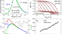 Here \({f}_{q}^{\prime}\) is the initial beating pattern contrast (see Supplementary Note 6 for the obtained results), τ is the relaxation time of density fluctuations and βKWW is the stretching parameter. In the fitting procedure βKWW was fixed to an average value obtained from DS measurements (〈βKWW〉 = 0.66) for \(q\, > \, {q}_{\max }\), similarly to what reported in refs. 8,9,10,12. Concerning the data collected at \({q}_{\max }\), βKWW has been increased by 20% (〈βKWW〉 = 0.79) in order to take into account its q-dependence, consistently to what discussed in ref. 12. \({\phi }^{\prime}\) has also been modeled using the Mittag–Leffler function35, the Fourier transform of the Cole–Cole function well known to properly describe the βJG relaxation in DS data2. This approach is delicate given the fact that (i) the TDI signal covers less than two decades in time and (ii) the Fourier transform of the Cole–Cole function has a very stretched tail. In other terms, the measured TDI signal is in general not very sensitive to the parameters of the (Fourier transform of) the Cole–Cole function. However, for the data-sets where this happens to be the case, modeling the TDI signal within the βJG-relaxation using the Cole–Cole susceptibility provides results very close to those obtained using the KWW function for what concerns both the quality of the fit and the estimated parameters, which turn out to be in mutual agreement within one standard deviation.