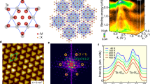 Figure 1a shows a large-scale scanning tunneling microscopy (STM) image with monolayer (ML) NbSe2 islands grown on BLG/SiC(0001). The 1T or 2H islands can be identified from the difference in the CDW superstructures, as the 1T phase has a larger modulation in the CDW pattern than the 2H phase (see Supplementary Fig. 1). Next, we focus on the ML 1T-NbSe2 islands. The center in Fig. 1a shows an ML 1T-island with a truncated triangular shape, with an edge length of ~120 nm. A schematic model of this ML 1T-NbSe2 island is shown in Fig. 1b. The atomic resolution image of the island shows a clear CDW pattern (in Fig. 1c, the inset is the fast Fourier transform (FFT) of this pattern), and a zoomed-in image (Fig. 1d) shows the basis vectors of both the atomic lattice in the topmost layer and the CDW pattern (a1 and a2; b1 and b2, respectively). The CDW order with a superstructure of √13 × √13 R13.9° to the topmost layer can be well distinguished. This type of CDW pattern is often known as the SOD pattern, reminiscent of those in 1T-TaS237,38 and 1T-TaSe28,32.