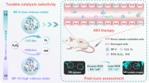 The in vivo toxicity of 2D V2C MXenzyme was initially evaluated. The results of established hematology, serum biochemistry, and histological assessment reveal that no appreciable inflammation, hydropic degeneration, pulmonary fibrosis, hyperplasia, necrosis, and other abnormal phenomena were examined in the groups for 4-weeks monitoring after intravenous injection of V2C MXenzyme at the dose of 15 mg kg−1 (Supplementary Figs. 29 and 30), collectively confirming that V2C MXenzyme is safe within our tested dosage for further in vivo use.