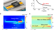 According to the friction measurement of the AFM tip/n-Si ordinary S-G (Fig. 1f), the minimum friction force during the sliding process is approximately \(f_{\min }^{(2)} = 1\,\mu {\mathrm{N}}\). Using the Hertz’s contact theory41,42, the maximum contact normal stress was calculated as 1.5 times the average contact normal stress. By assuming that the friction shear stress is proportional to the contact normal stress at the contact area A of the tip, we can estimate the maximum friction shear stress as \(P_{\mathrm{f}}^{\left( 2 \right)} = 1.5 \times f_{{\mathrm{min}}}^{\left( 2 \right)}/A \approx 4.37\,{\mathrm{GPa}}\) (see Supplementary Section 5). Accordingly, the lower limit frictional energy \({{\Delta }}E_{\mathrm{f}}^{(2)}\) is \({{\Delta }}E_{\mathrm{f}}^{(2)} = P_{\mathrm{f}}^{\left(2\right)}c^{2} b \approx 2.46 \,{\mathrm{eV}},\) where c ≈ 0.408 nm is the lattice constant of Au. The result of \({{\Delta }}E_{\mathrm{f}}^{(2)} \,> \, {{\Delta }}E_{\mathrm{g}}\) confirms that friction-induced excitation is the main mechanism involved in the AFM tip/n-Si ordinary S-G.