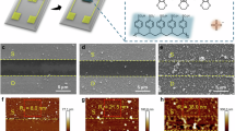 Atomic force microscopy (AFM) and conductive-AFM (c-AFM) were performed in a Dimension 3100/Nanoscope IV system, equipped with a c-AFM module (current sensitivity 1 nA V−1) from Bruker. Soft Pt/Cr-coated silicon probes (k = 0.2 N m−1) were used to simultaneously map topography and current in contact mode at a constant load force of 2–5 nN. The current maps were obtained by constantly biasing the Au substrate, while keeping the scanning AFM probe at ground. All the measurements were performed at room temperature in ambient atmosphere.