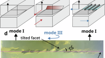 where N the number of fragments per area S, σt the tensile stress, κIc the mode-I fracture toughness and \(\alpha =16/(15\sqrt{3}(1+\nu ))\) with ν the Poisson ratio. This presupposes that after fragmentation fragments contain no residual stress, which is unrealistic; using crossed polarizers to observe birefringence, we can see that the fragments still carry a fraction of the initial stress. This is a generic observation and results in an underestimation of the fragment size, simply because not all of the energy is used to create fragments. To correct this, it is common practice to use α as an adjustable parameter instead. We find that α = 0.19, relatively close to the actual value for our glass type, i.e., α = 0.5, yields accurate predictions of experimental fragment sizes. The value 0.19 is in fact a commonly found value (see39 and references therein). To account also for the characteristic size in the Prince Rupert’s drops we employ the above equation, using the tensile stress values measured by Aben et al.27, as standard techniques do not allow to measure the stress values due to the drop’s complicated shape. The measured values for the internal stresses of the Prince Rupert’s drops are more than an order of magnitude larger than those in the glass plates, explaining why there are much more and much smaller fragments for the drops compared to the plates. Quantitatively, we find that although it is perhaps a bit naive to extend the plate model to a 3D fracture in this way, the prediction with the same fit parameter α = 0.19, matches well with the characteristic size as found in our measurements (Fig. 3c). Note that the prediction for the Prince Rupert’s drop (Eq. (1)) only applies to the large fragments of the distribution; the smaller “dust” particles also have an exponential size distribution, but with a characteristic size that is roughly an order of magnitude smaller. Our approach does not allow to account for these smaller fragments.