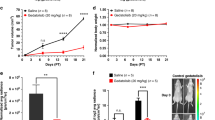 Data analysis were performed with GraphPad Prism version 7 for Windows. The differences between experimental groups in nuclei/cell density and tumor volume were analyzed using independent t-tests. Survival analysis was performed using the Kaplan–Meier method and log-rank tests. The asterisks in each figure denote statistical significance, or ns for non-significant p > 0.05; *p < 0.05; **p < 0.01; and ***p < 0.001. All the data were reported as mean ± SEM (standard error of the mean). For all experiments, each experiment was independently repeated for at least three times with similar results.