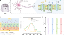 A synapse is a structure through which a neuron can transmit signals to another neuron. The action potential in the presynaptic neuron triggers the release of neurotransmitters from synaptic vesicles into the synaptic cleft. Neurotransmitters will then bind to receptors at the plasma membrane of the postsynaptic neuron and generate the postsynaptic current. Analogously, OECT gate voltage and channel current can be regarded as the action potential and postsynaptic current, respectively. Similarly, the electrochemical doping and dedoping process in an OECT channel by the voltage-controlled injection and extraction of ions is quite similar to the neurotransmitter release and uptake at the synaptic cleft (Fig. 1a). Before simulating synaptic functions using OECT, the non-volatility of OECTs is evaluated first. OECTs were fabricated photolithographically (Supplementary Fig. 1) with PEDOT:Tos/PTHF composites (insert in Fig. 1a), which is deposited by vapor phase polymerization (VPP, Supplementary Fig. 2), as active channel. Different mass ratios of PTHF were adopted and the resulting films are annotated as P-x% PTHF (x = 0, 20, 50, 80, 90) (in the film, x% is PTHF by mass). The morphology and thickness of P-x% PTHF films are shown in Supplementary Fig. 3. The transfer characteristics of the OECTs were measured by cycling VG from −0.8 to 0.8 V while maintaining VDS at −0.2 V. By comparing the transfer curves of the PEDOT:Tos-based OECT with the P-80% PTHF-based OECT in Fig. 1b, a significant hysteresis enhancement with a memory window around 0.39 V could be observed in the P-80% PTHF-based OECT. Supplementary Fig. 4b confirms that OECTs of higher PTHF blend ratios show larger hysteresis, i.e., memory effect. To validate the cycling stability of the hysteresis, a P-80% PTHF-based OECT was consecutively scanned 50 times between −0.8 V and 0.8 V and showed repeatable characteristics (Supplementary Fig. 5). By carefully controlling the VPP process, the reproducibility of the fabrication is good and the P-80% PTHF-based OECTs show coherent performance with maximum current values of \(1.12\pm 0.27\,{\rm{mA}}\) and a memory window of \(0.34\pm 0.07\,{\rm{V}}\) (N = 6, over 3 separate VPP syntheses). To investigate the non-volatile feature of the PEDOT:Tos/PTHF-based OECTs, the charge retention property was further studied by applying 1 s pulsed gate voltage with various amplitudes and polarities. The memory level indicated in Fig. 1c was defined as the magnitude of the difference in the steady-state channel current after being programmed at a specific gate voltage (\({I}_{{\rm{DS}}\_{\rm{Steady}}({\rm{Vg}})}\)) relative to the steady-state channel current after being programmed at the initial −0.2 V gate voltage (\({I}_{{\rm{DS}}\_{\rm{Steady}}(-0.2)}\)) (Supplementary Fig. 6). As shown in Fig. 1c, the memory level increased with increasing positive programmed gate voltage and increasing PTHF blend ratio, indicating the continuous conductance tunability of the non-volatile OECT with write bias <0.8 V. Charge retention time longer than 200 min was also demonstrated in OECTs with varied biasing condition (0.6, 0.7, and 0.8 V) and channel composition (P-50% PTHF and P-80% PTHF) (Supplementary Fig. 7). The reversibility of the device is critical and was verified in P-80% PTHF-based OECT by programming the device with discrete pulsed voltage or a pulse train as shown in Supplementary Fig. 8. The conductance of the device can be reliably tuned to discrete levels between high and low (Fig. 1d), which implies good reversibility. More importantly, our non-volatile OECT retains its memory effect even when the gate terminal remains connected and the bias is returned to 0 V. As such, this device avoids the use of a transistor or memristor-based access device, which can simplify circuit design in more complicated 1-transistor-based active arrays42.